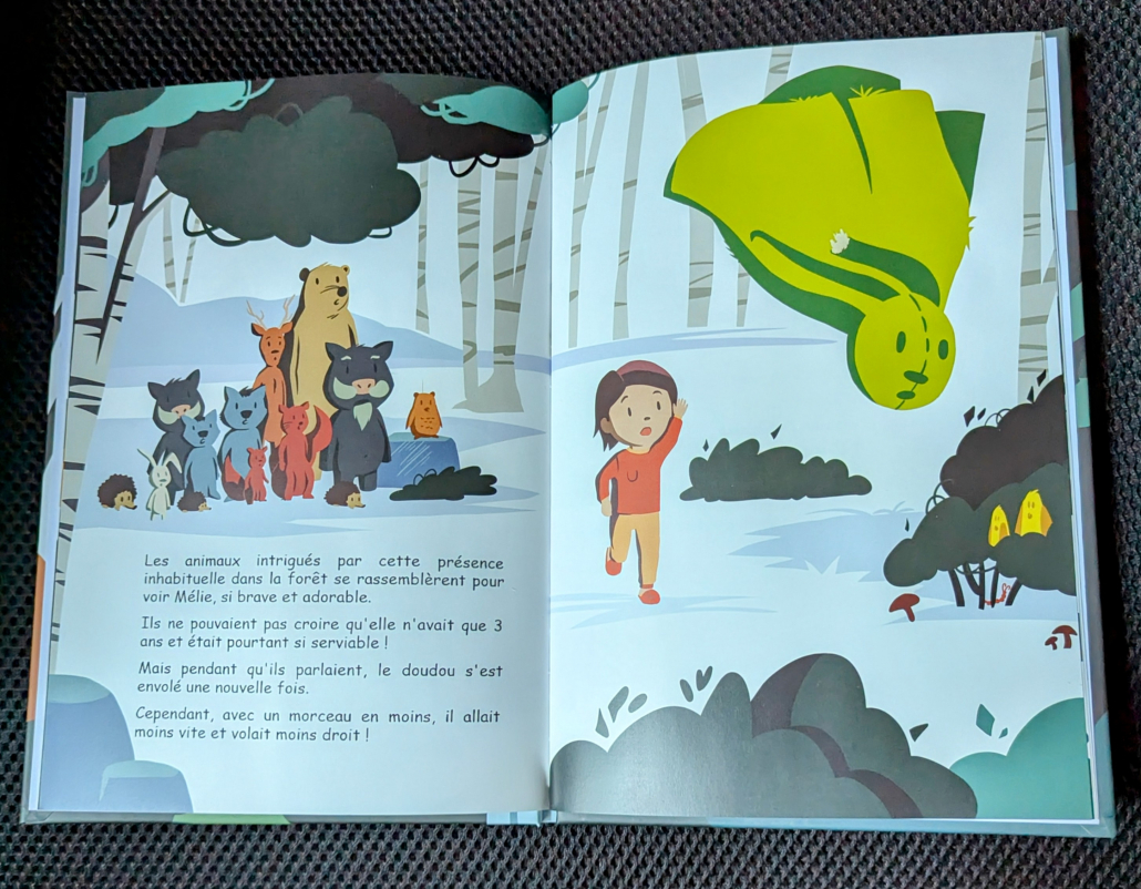 Le doudou de votre enfant s’est envolé. Il part à sa recherche et chemin faisant, va rencontrer les animaux de la forêt et vivre une belle aventure.