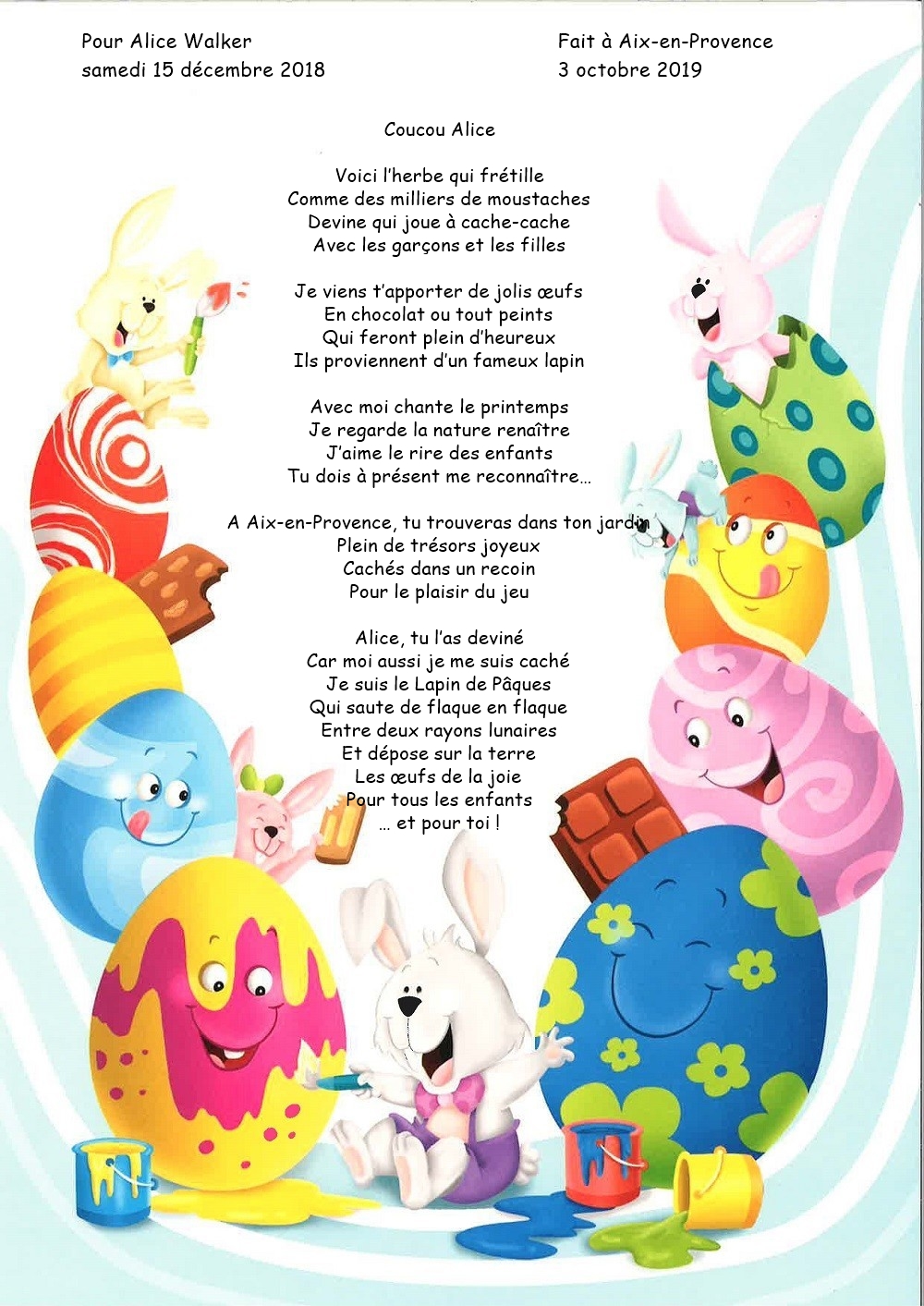 Quoi de plus magique que de recevoir le poème du lapin de Pâques ?  Un poèmes avec les rimes au prénom de votre enfant